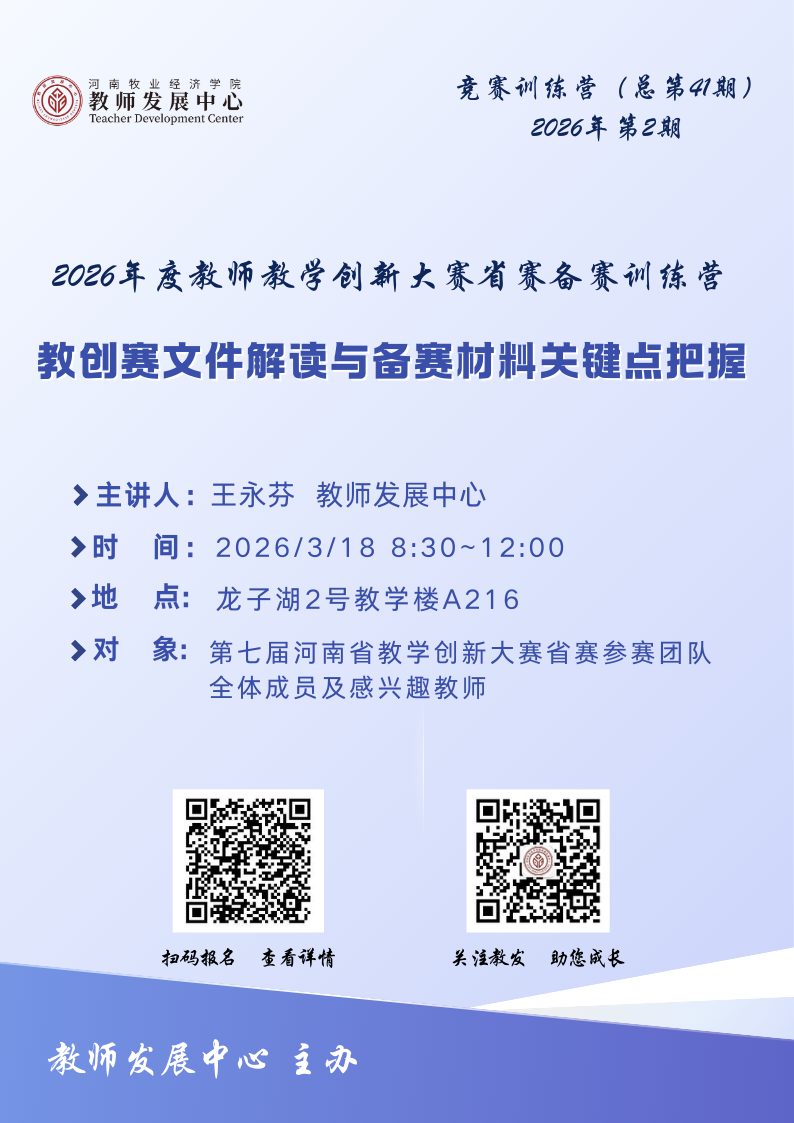 2026年度教师教学创新大赛省赛...活动日期:2026年03月17日活动地点: |