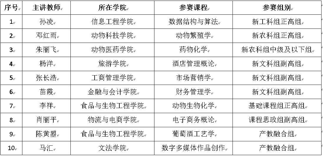 根据河南省教育厅办公室《关于举办第六届河南省本科高校教师课堂教学创新大赛的通知》(教办高〔2025〕90号)要求,结合我校2024年度教师教学创新大赛结果,经学校研究决定,拟确定推荐10名教师参加省赛,现予以公示。