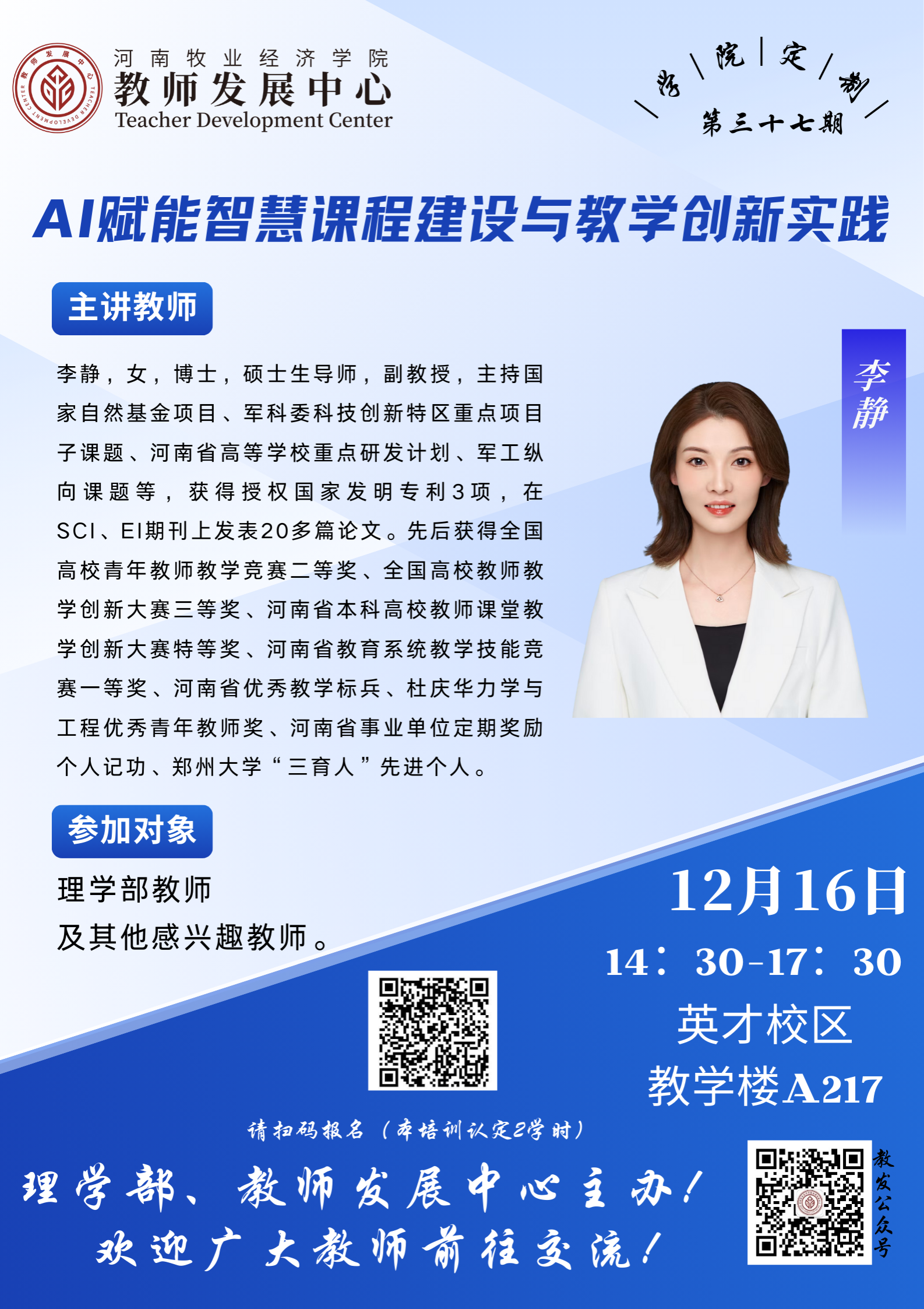 【学院定制】(第37期):AI赋能智慧课程建设与教学创新实践